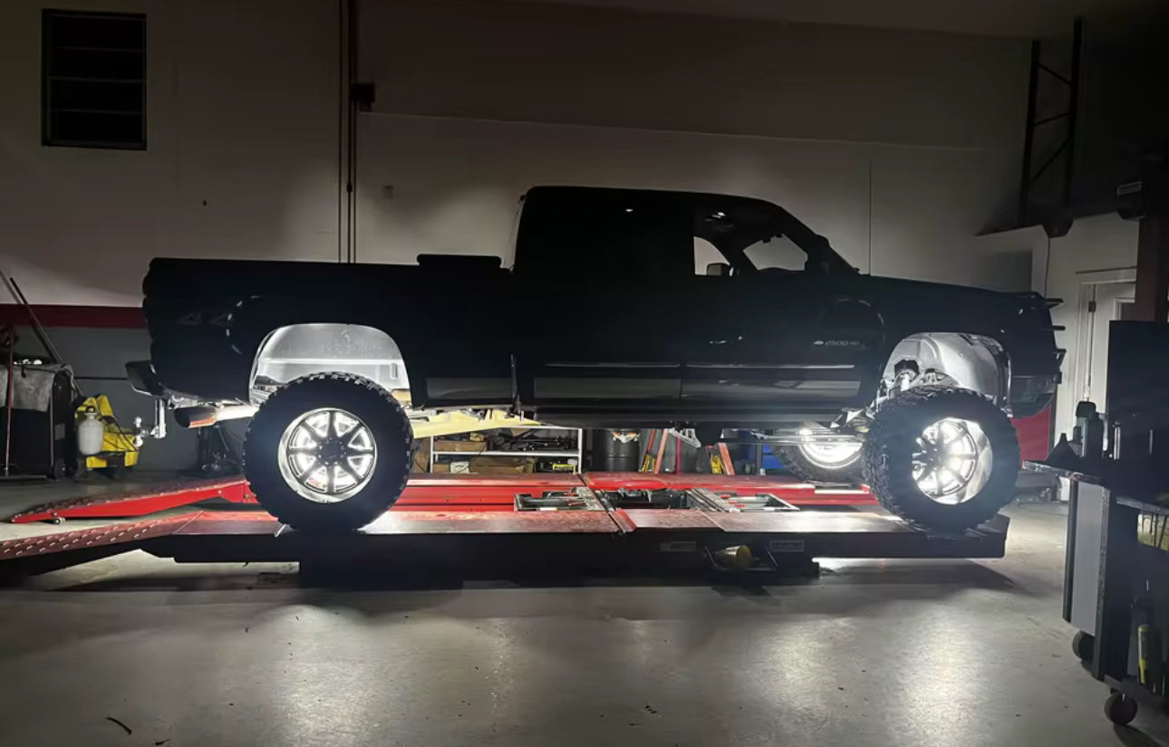 Take your build to the next level with our ultra-bright 10 Row Pure White LED Wheel Lights. Designed for show trucks, off-road enthusiasts, and anyone looking to stand out, these wheel lights deliver unmatched brightness and full 360-degree illumination around your wheels. Featuring ten high-density rows of premium LED chips, these rings are among the brightest on the market and provide superior night-time visibility and show-quality appearance.